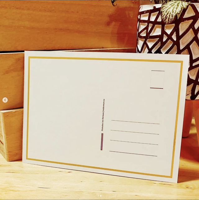 Auf der Rückseite sind Linien für die Adresse, die Briefmarke und die Angabe der Illustratorin vorgedruckt.